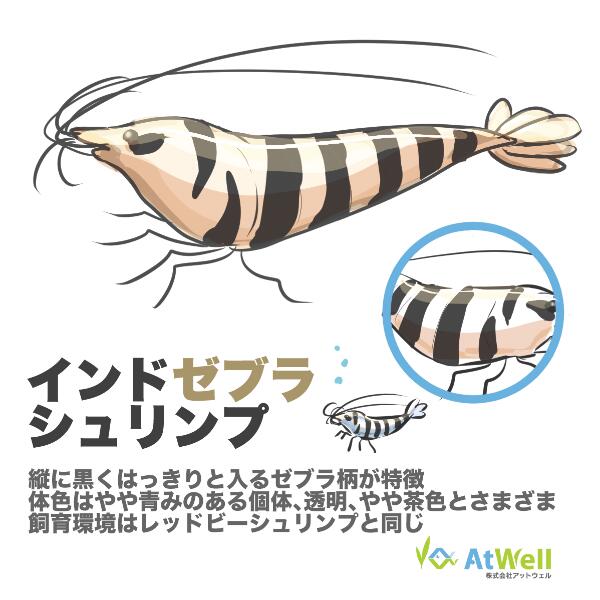 ゼブラシュリンプの一種で、縦に太くはっきりと入るゼブラ柄が特徴のシュリンプです。