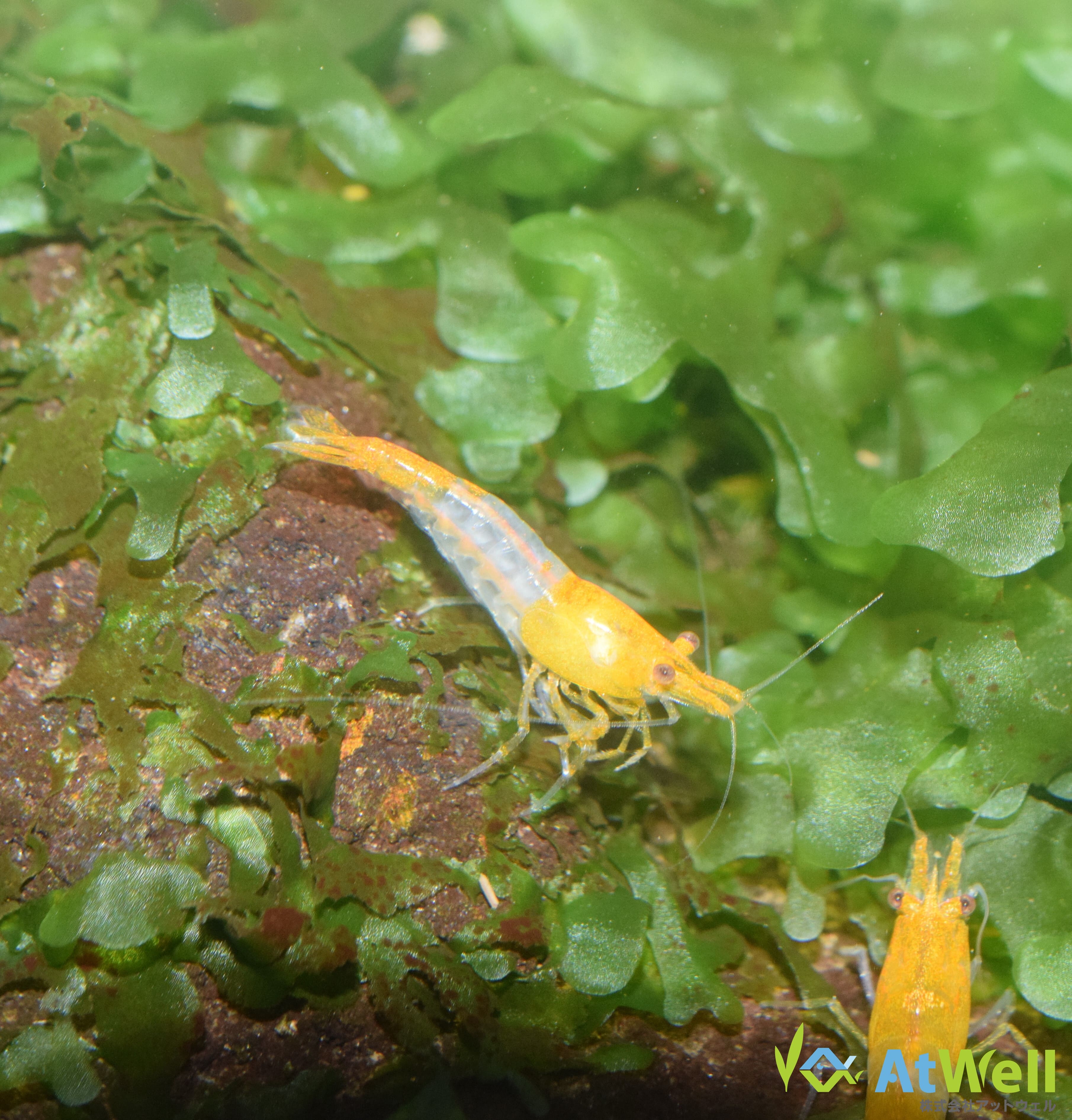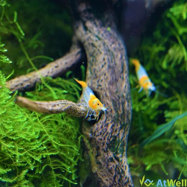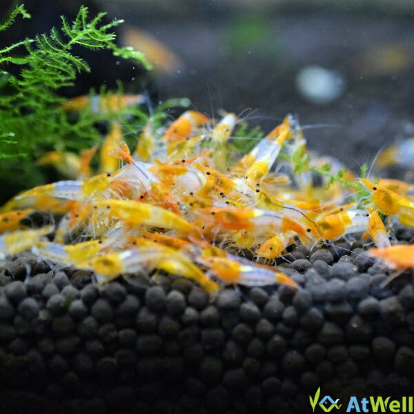 チェリーシュリンプの改良品種です。若干表現に個体差がありますが、頭と尾の部分にオレンジ色を残し、胴体部分が透明になる種類となります。 体長約1.3cm〜1.8cmのお届けとなります。