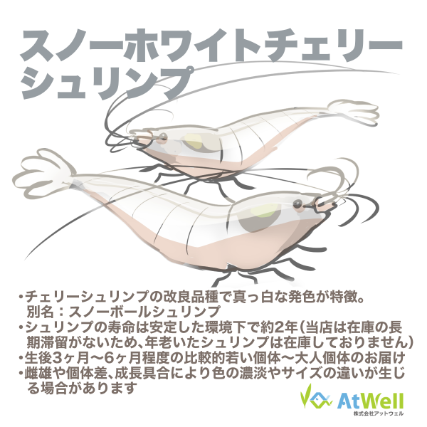 スノーホワイトチェリーシュリンプ 10匹+1匹補償サービス付き
